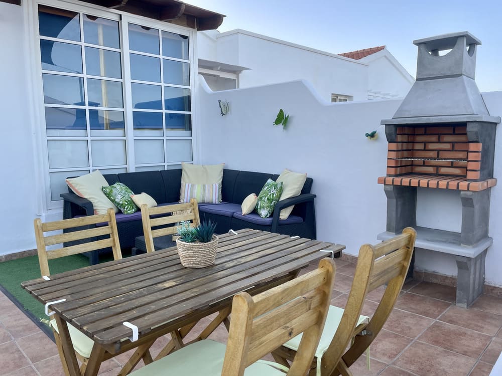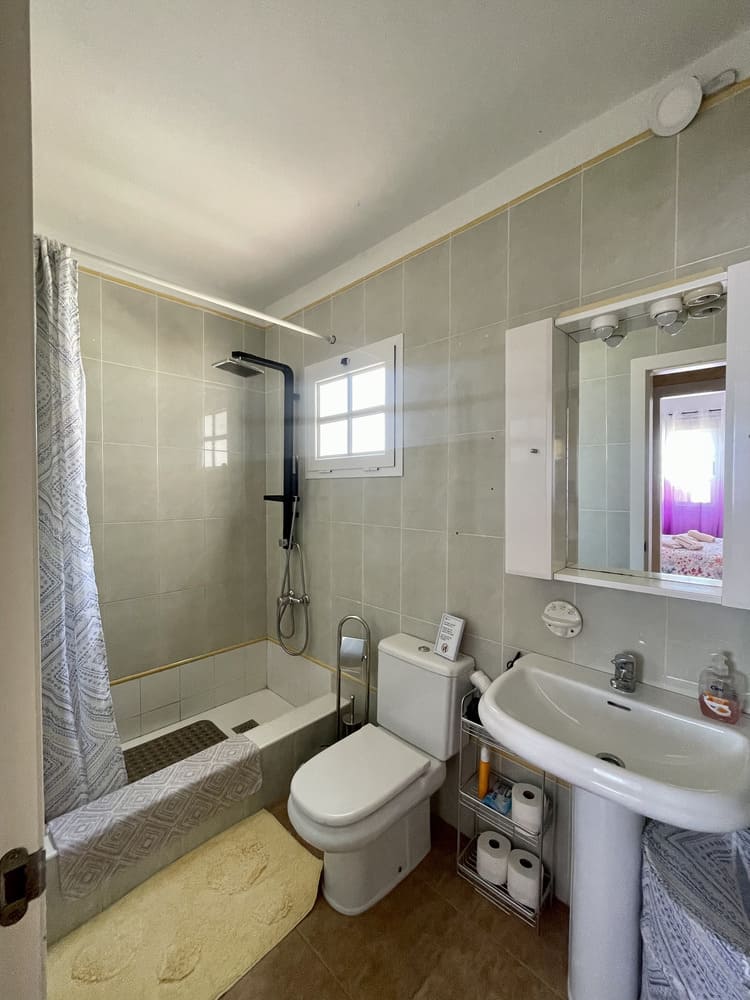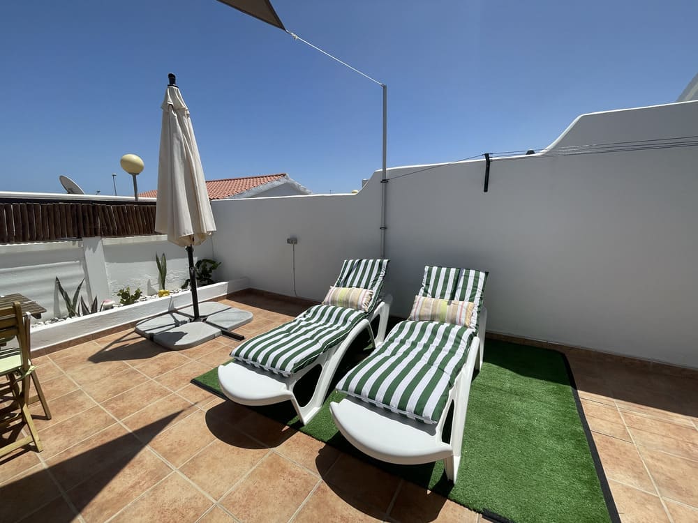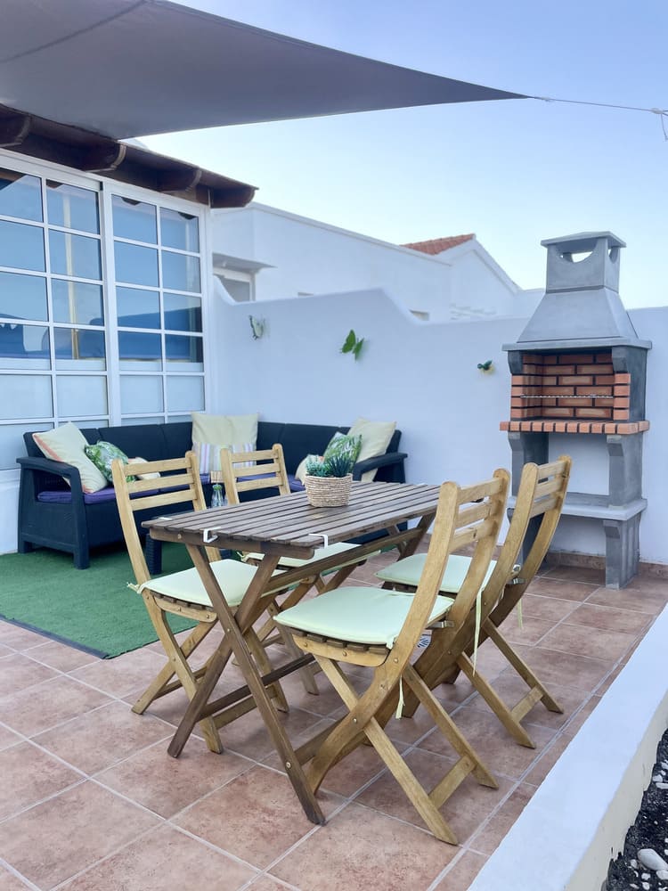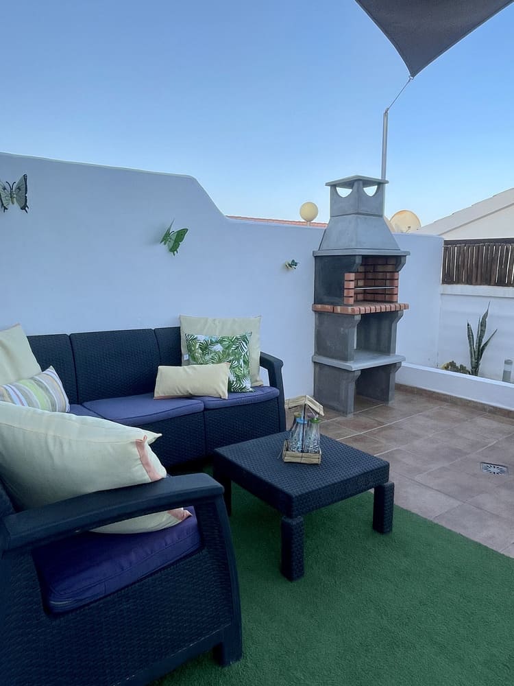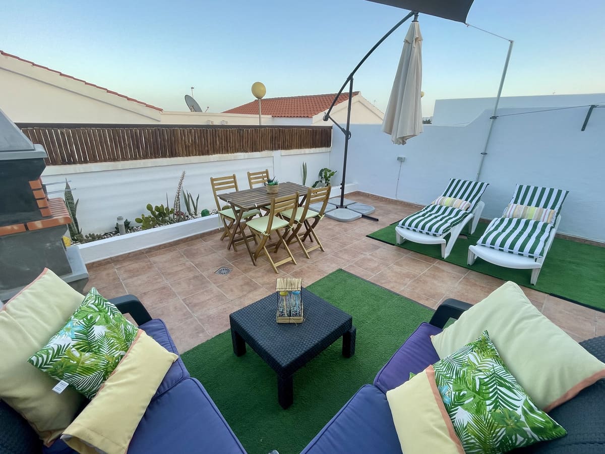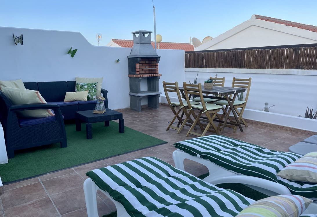 El bungalow cuenta con solana donde pueden usar la lavadora si así lo desean, y toda clase de enseres para el uso de los huéspedes (botiquín, kit de costura, nevera de playa, ventilador de mesa..).