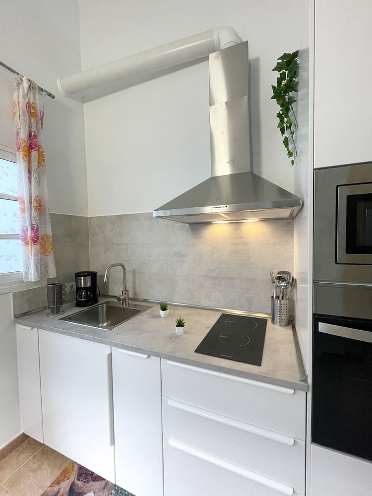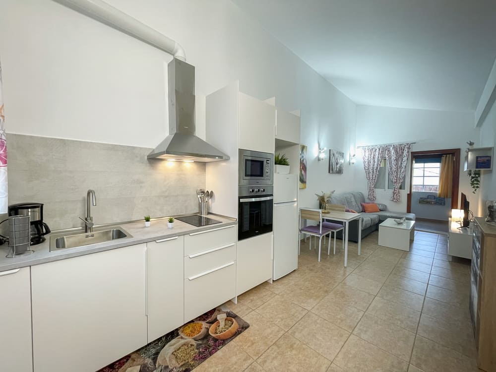 La cocina está totalmente equipada, con vitrocerámica de 2 fuegos, horno, microondas, nevera – congelador, menaje para cocinar y toda clase de pequeños electrodomésticos para hacer su estancia más fácil.
