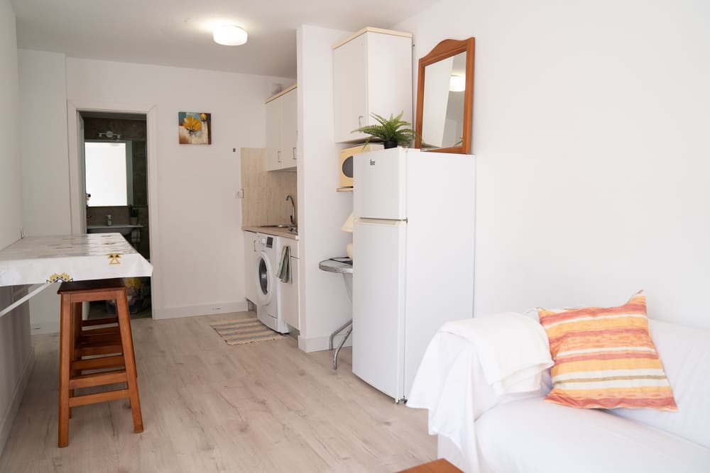 Apartamento recién renovado en Puerta del Sol, situado en el corazón de Caleta de Fuste. Consta de un dormitorio, baño con ducha italiana, salón- cocina diáfana con mucha luz durante todo el día. Orientado hacia el sur con largas horas de sol en su terraza privada.