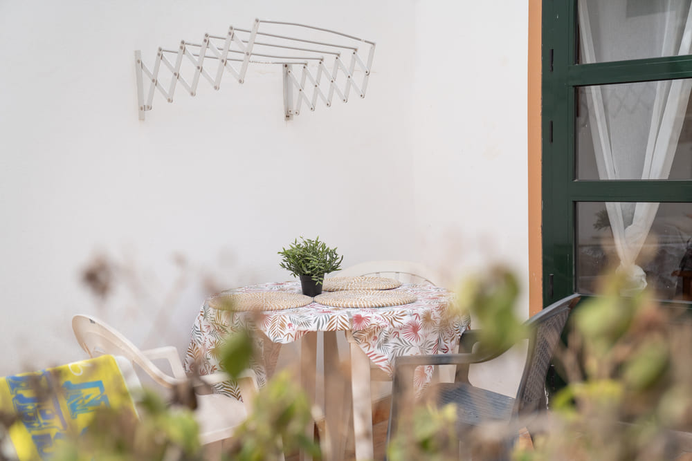 En la terraza podrán utilizar una mesa ideal para desayunos o para ver el atardecer.  2 tumbonas de gran tamaño para darse baños de Vit-D! Con sol todo el día gracias a su orientación sur!