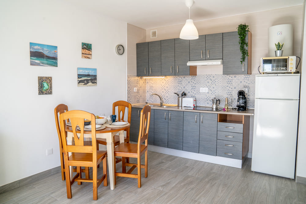 Cocina equipada con menaje y pequeños electrodomésticos para hacer su estancia lo más cómoda posible.