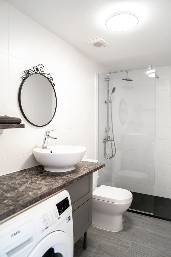 Apartamento de 1 dormitorio, baño con ducha italiana. Cuenta también con lavadora para el uso de los huéspedes.