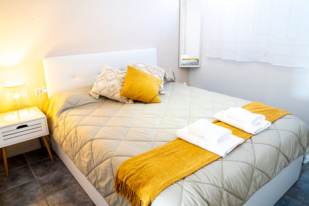 Dormitorio principal con cama queen-size y armario empotrado, sofá cama en la sala de estar perfecto para otras 2 personas, terraza privada con mobiliario, perfecto para el atardecer. Cuna bajo petición y sujeto a disponibilidad.